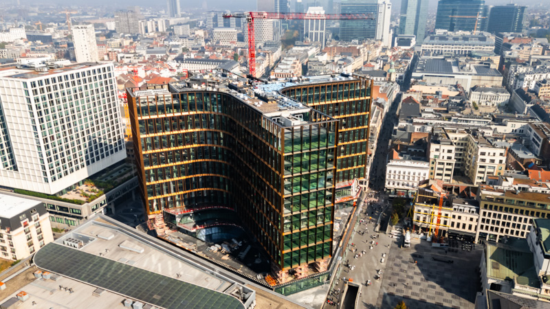 Grupa Tectum dostarczyła i zainstalowała 8000 m² płaskich dachów i 320 m² zielonych dachów, przyczyniając się do zarządzania wodą miejską i równowagi ekologicznej terenu. Projekt jest doskonałym przykładem zrównoważonych rozwiązań dachowych w nowoczesnej architekturze w sercu Brukseli.
